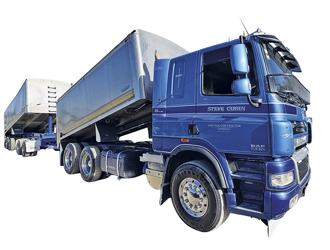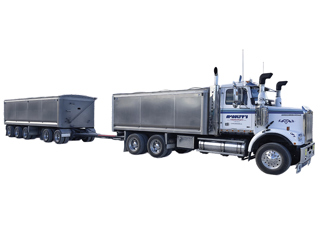 Engine: 450Hp, Transmission: 18 Speed Road Ranger, CTI Tyre Inflation, 6900mm deck length, 1200mm sides, 2005 Total Transport 4 axle Trailer, 7570mm Tip deck length, 1200mm Front Split length.