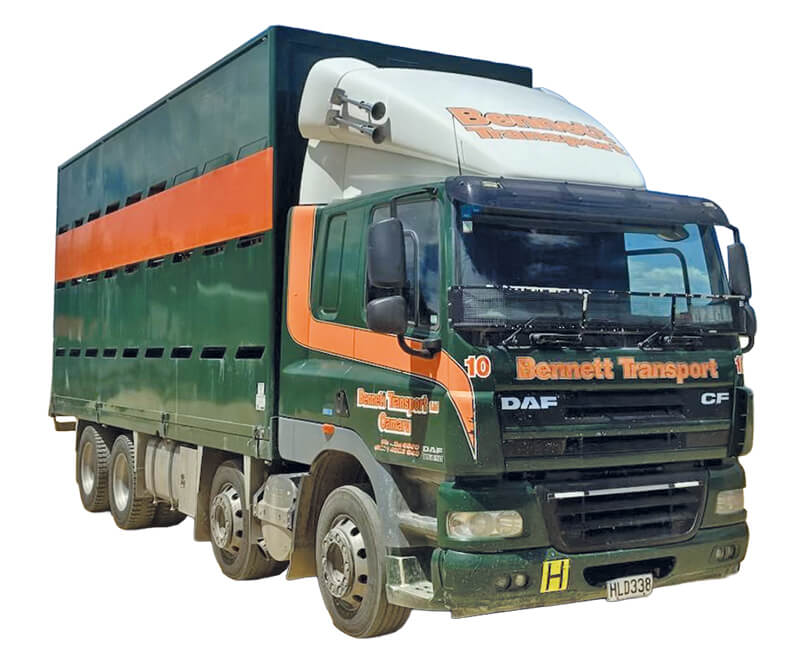 Approx 930,000kms (engine rebuild at 730,000kms). Jackson 25ft stock deck with 3-deck Nationwide crate. CTI, and full air suspension
