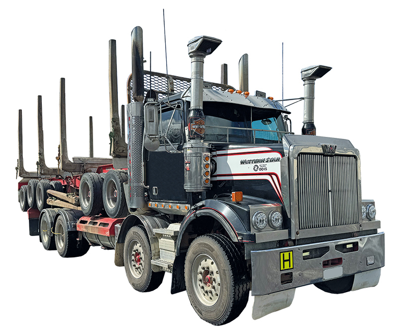 DD15 900,000kms, Roadranger, Patchell log gear. 2014 Patchell 5-axle, air suspension with drum brakes and all current certs.
