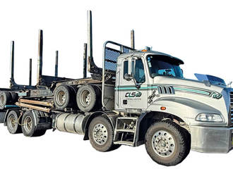 MP8 500 hp, 18 Speed RoadRanger, Power divider, cross locks, Bigfoot Tyre inflation, Scales. Highway Hound Trailer on ROR Disc brake axles